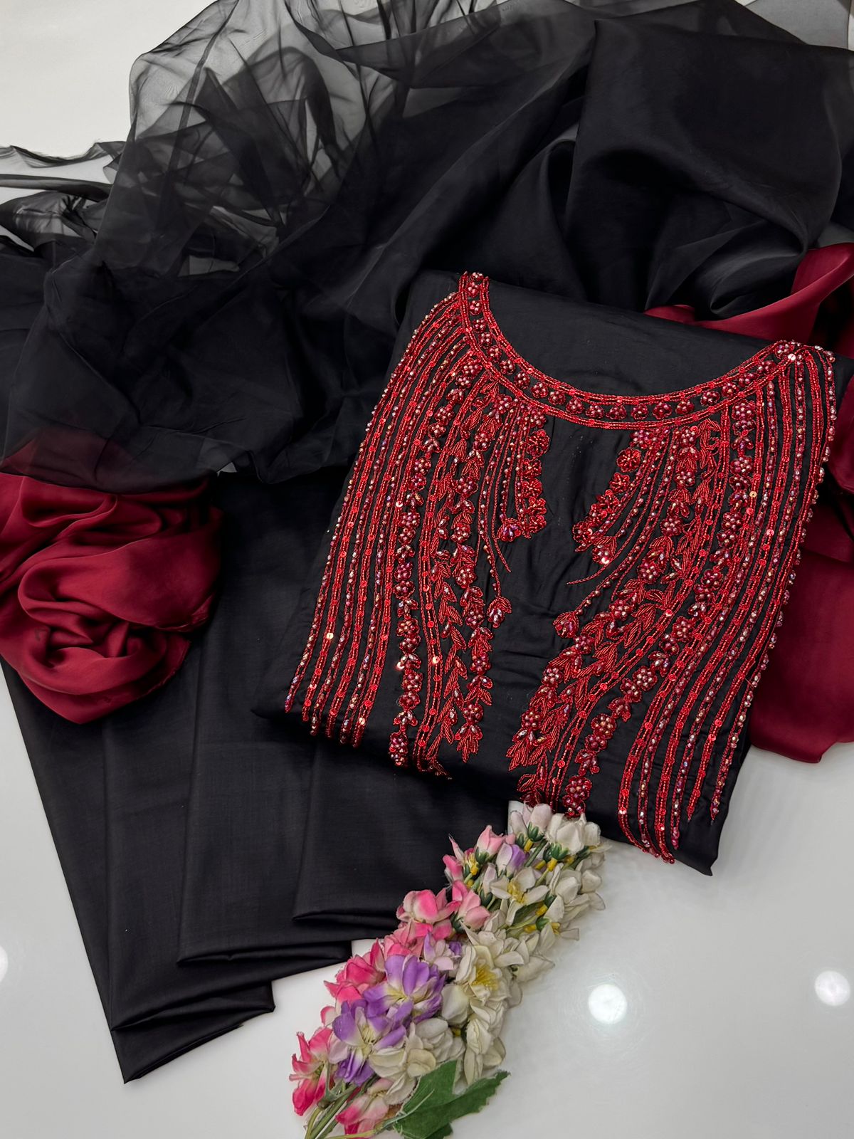 Shirt: Premium Organza with Heavy Handwork Embroidery featuring Rasham & Beads Detailing for a truly regal look.